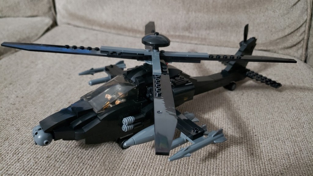 PEW PEW, ATTACK CHOPPER. Not a Lego, again, but close enough for government work.